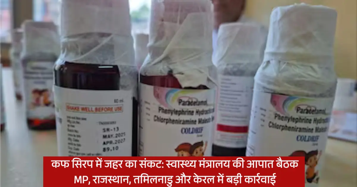 कफ सिरप में जहर का संकट: स्वास्थ्य मंत्रालय की आपात बैठक; MP, राजस्थान, तमिलनाडु और केरल में बड़ी कार्रवाई